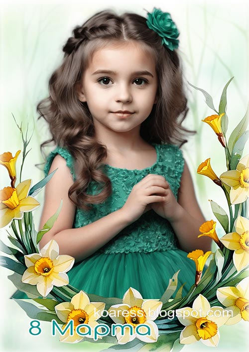 Весенний детский коллаж к 8 марта - 90 / Children frame for March 8 - 90