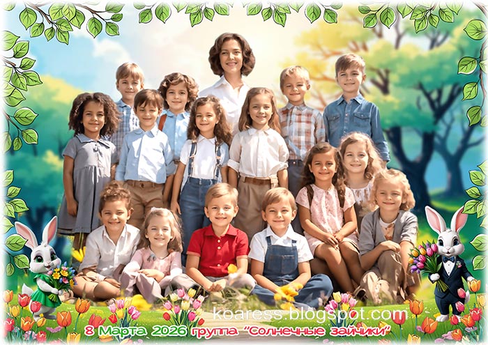 Шаблон детской фоторамки к 8 Марта - Весенний утренник в саду