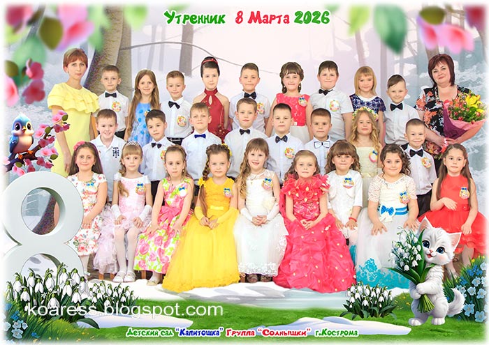 Шаблон детской фоторамки для группового фото на утреннике 8 Марта