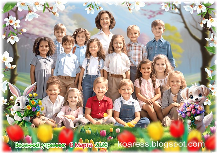 Шаблон детской фоторамки к 8 Марта - Весенний утренник