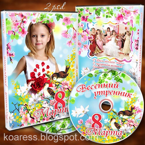 Обложка и задувка на диск с детским видео весеннего утренника - 2 / Children spring holiday dvd cover- 2
