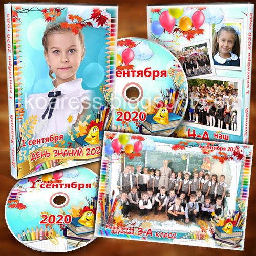 Детская обложка и задувка для DVD диска со школьным видео плюс фоторамка для фото класса 1 сентября 3 PSD 3248x2185, 1431x1431, 4961x3508 300dpi 169,36 Mb