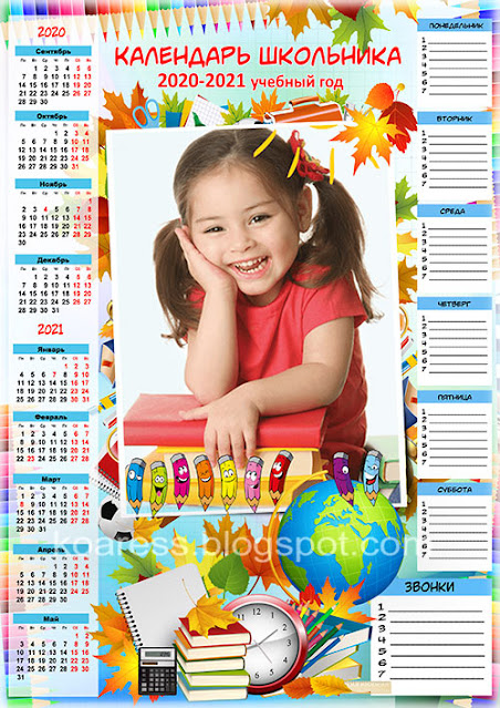 Календарь школьника на 2020-2021 учебный год с расписанием уроков и расписанием звонков