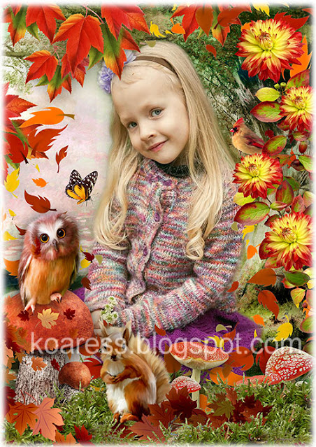 Фоторамка с белочкой и совой для оформления детских осенних портретов