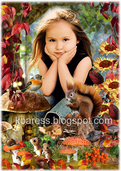 Детский коллаж для осенних портретов с белочкой, птичкой и мышками