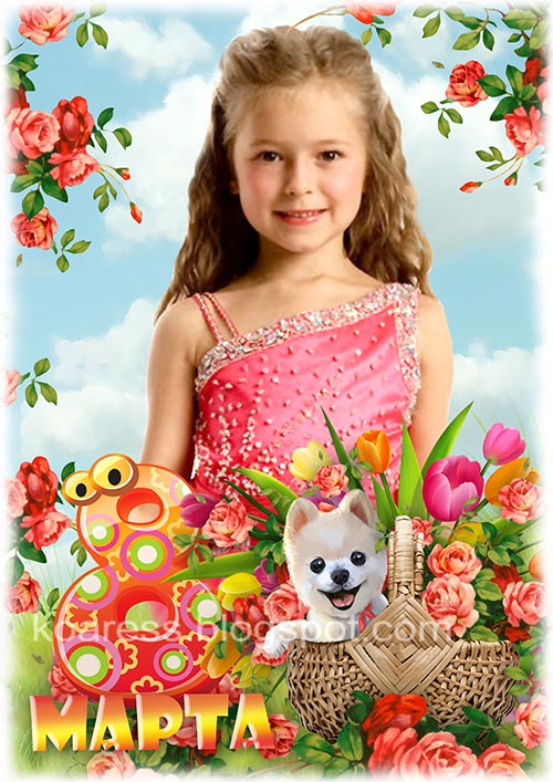 Портретная детская рамка к 8 Марта - 13 / Children frame for March 8 - 13