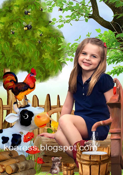 Шаблон для фотошопа для оформления детских фото Деревенские истории