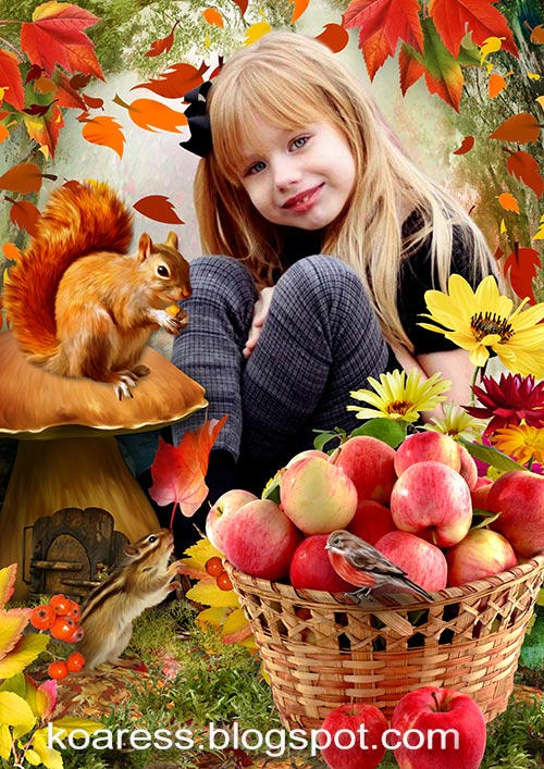Осенний многослойный коллаж для детских портретов - 18 / Children autumn frame - 18