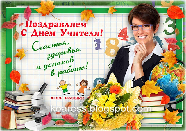Школьная открытка для поздравления учителей с профессиональным праздником Днем Учителя