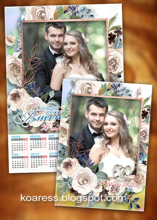 Набор из календаря и фоторамки для свадебных фото жениха и невесты на 2022 год