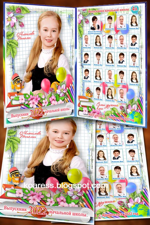 Фотопапка для выпускников 4 класса - Последний звонок 23 / Children school vignette and potrtait - 23