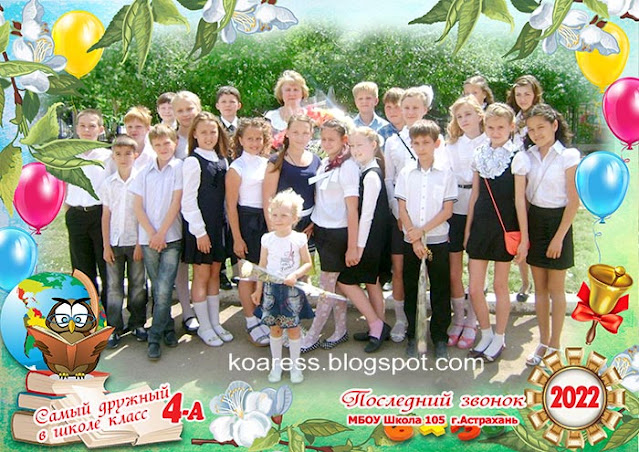Школьная рамка для фото класса младших школьников на последнем звонке