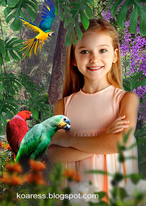 Детский многослойный шаблон для фотошопа - В Джунглях