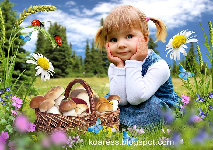 Детский многослойный шаблон для фотошопа - Грибное лето