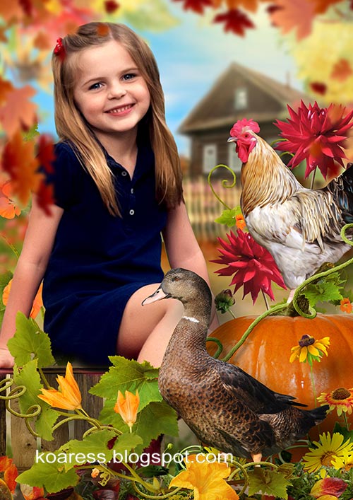 Осенний коллаж для детских фотопортретов Осень в деревне