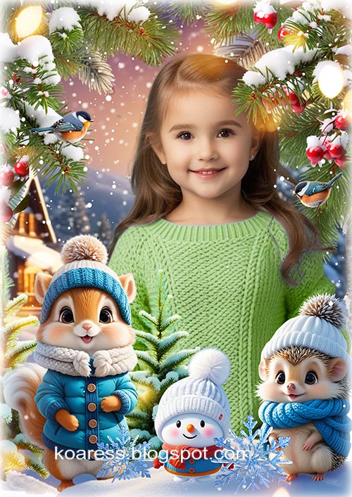 Портретная зимняя рамка для детских портретов - 17 / Children winter frame - 17