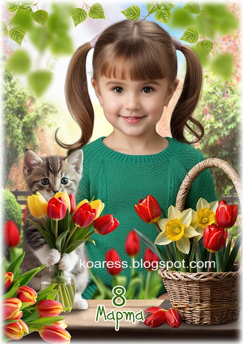 Весенний детский коллаж к 8 марта - 47 / Children frame for March 8 - 47