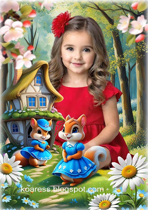 Детский многослойный шаблон для фотошопа - Беличья избушка