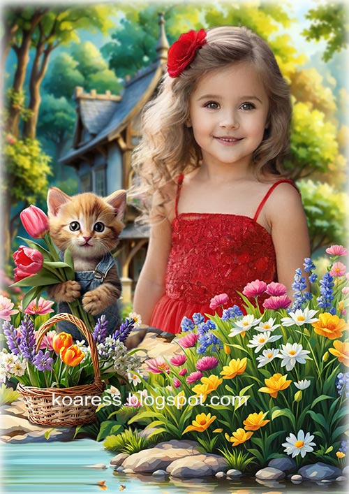 Многослойный сказочный шаблон для фотошопа - Цветы на берегу пруда