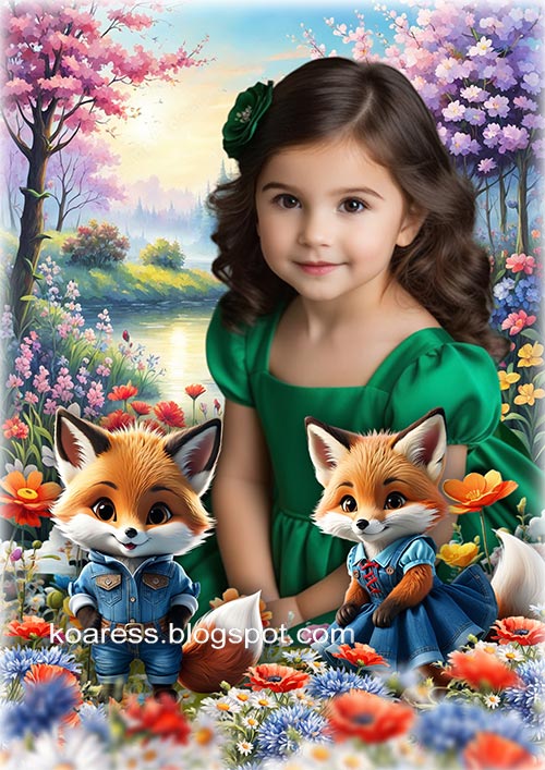 Многослойный сказочный шаблон для фотошопа - Лисята