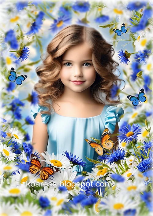 Многослойный детский шаблон для фотошопа - Луговые цветы