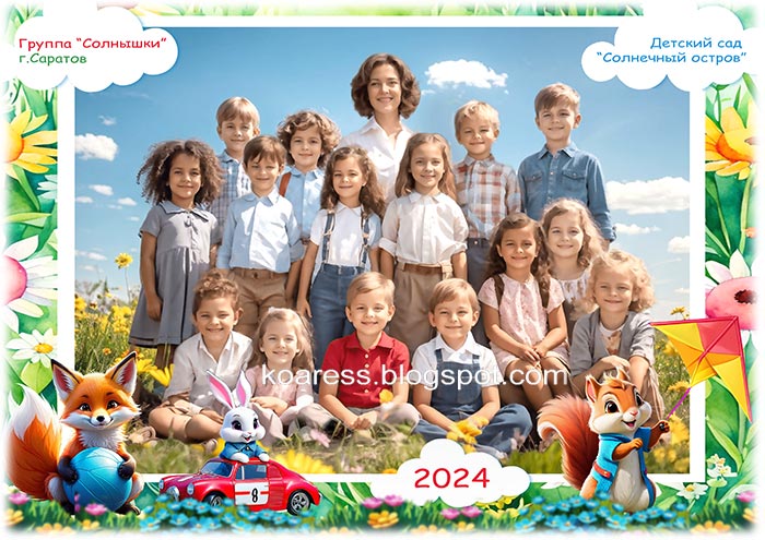 Шаблон детской фоторамки для группового фото - Летним утром нам полянке