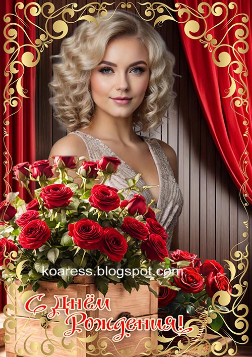 Поздравительная рамка-открытка с Днем Рождения - Все розы мира только для тебя