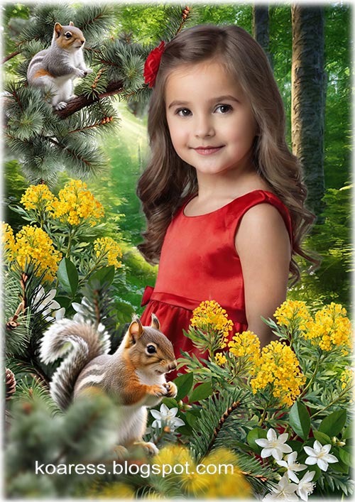 Многослойный детский шаблон для фотошопа - Летний лес
