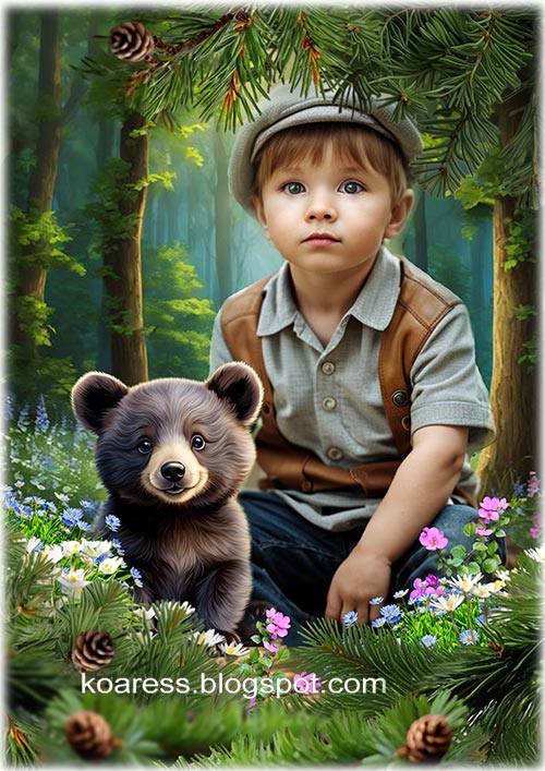 Многослойный детский коллаж для фотошопа - Встреча в лесу