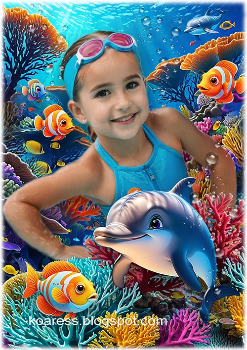 Многослойный детский коллаж для фотошопа - Коралловый риф