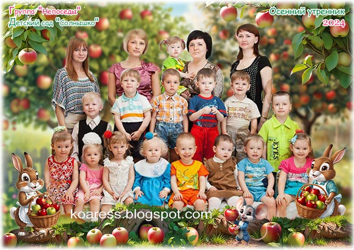 Детская фоторамка для осеннего фото группы на Празднике Урожая - Яблоневый сад