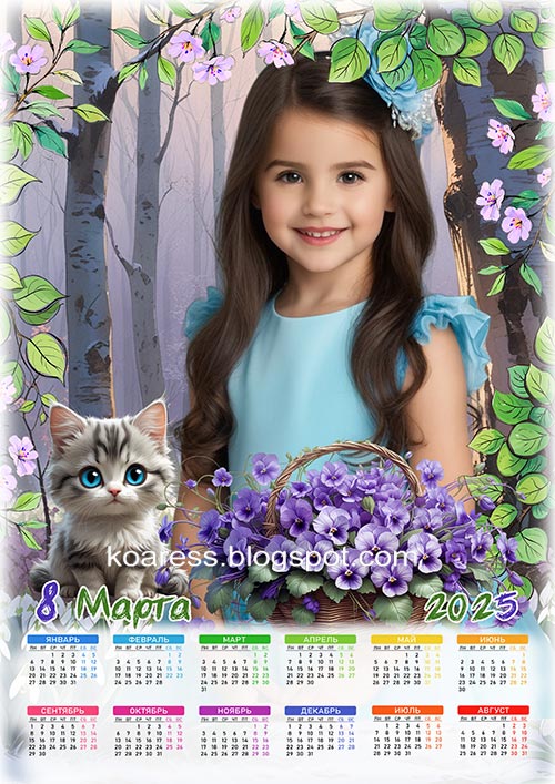 Календарь на 2025 год для детей - Фиалки к празднику 8 Марта
