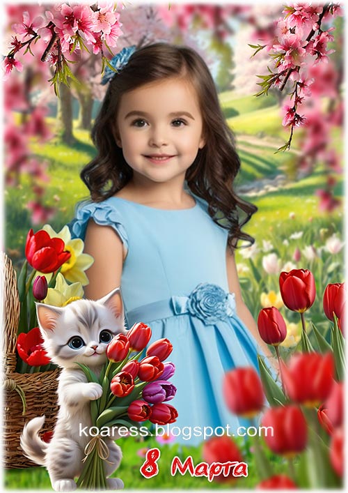 Весенний детский коллаж к 8 марта - 73 / Children frame for March 8 - 73