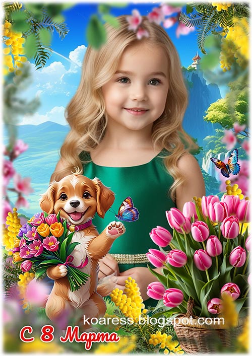 Весенний детский коллаж к 8 марта - 74 / Children frame for March 8 - 74