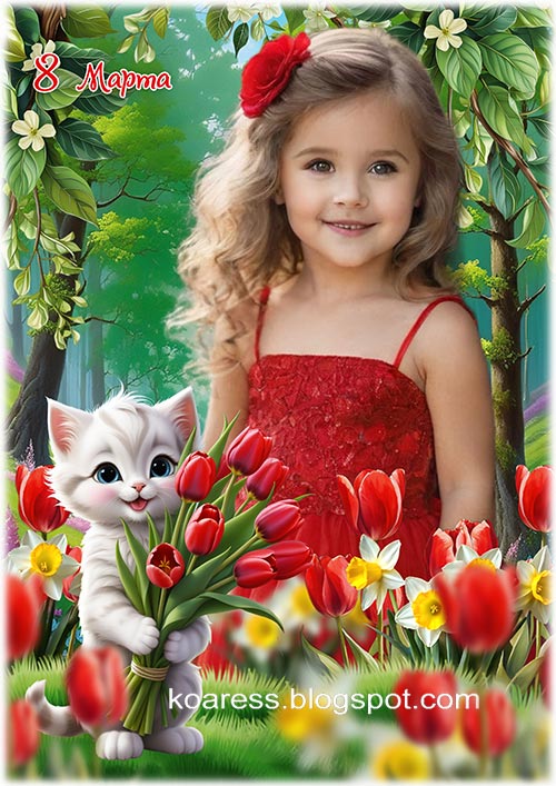 Весенний детский коллаж к 8 марта - 75 / Children frame for March 8 - 75