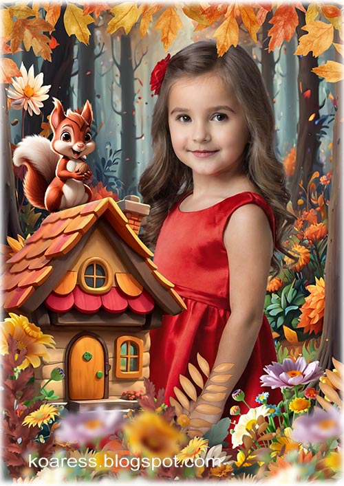 Осенний коллаж для детских портретов - Орешек для белочки