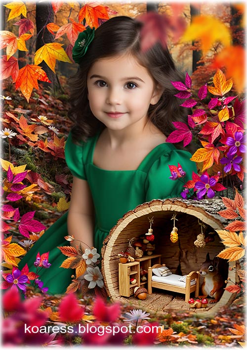 Осенний коллаж для детских портретов - Беличья избушка