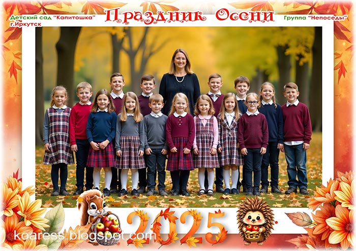 Детская фоторамка для группового осеннего фото в детском саду - 20 / Children frame for autumn group photo - 20