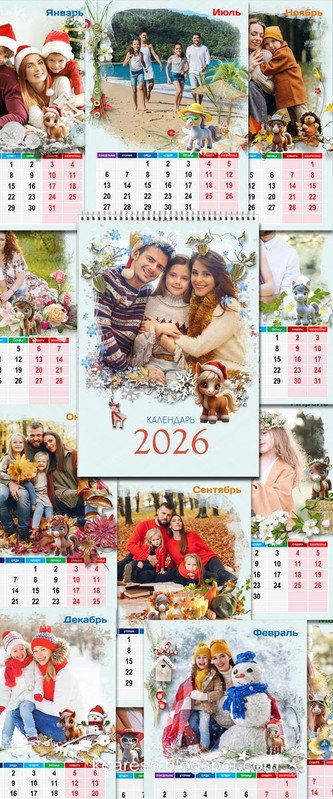 Настенный перекидной календарь на 2026 год с лошадками